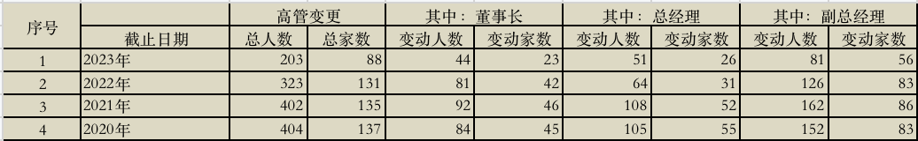 Wind数据显示,2020年至2022年,每年都有超130家基金公司发生高管变更,其中2021年和2022年涉及人数超过400人,2022年相比减少了。今年已过半,已经有88家公司发生高管变更,涉及203人。