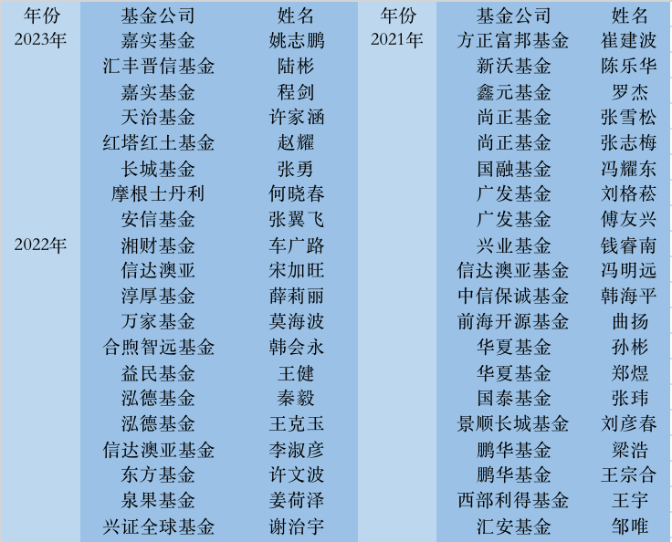 2021年,鹏华基金经理梁浩、王宗合晋升公司副总经理,届时个人管理规模都超过500亿元。同年,晋升副总的还有景顺长城基金经理刘彦春、前海开源基金曲扬和邱杰。中小基金公司中,信达澳亚基金冯明远,中庚基金丘栋荣、圆信永丰基金范妍和博道基金史伟等人均被提拔为公司副总。