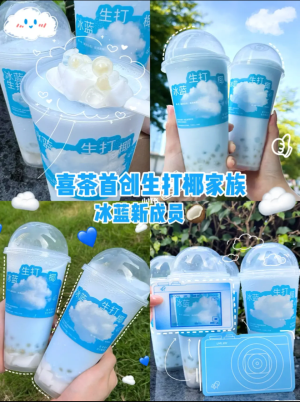 近日,喜茶小红书官宣「首创生打椰家族的新成员」:冰蓝生打椰。新品采用定制生椰乳保留椰子原始风味,搭配Q弹软嫩的椰椰冻、马蹄爆爆珠以及脆啵啵,清新爽口,另外,新品于7月18日正式上线,会随机搭配不同款式的云朵杯贴进行销售。(品牌官方)
