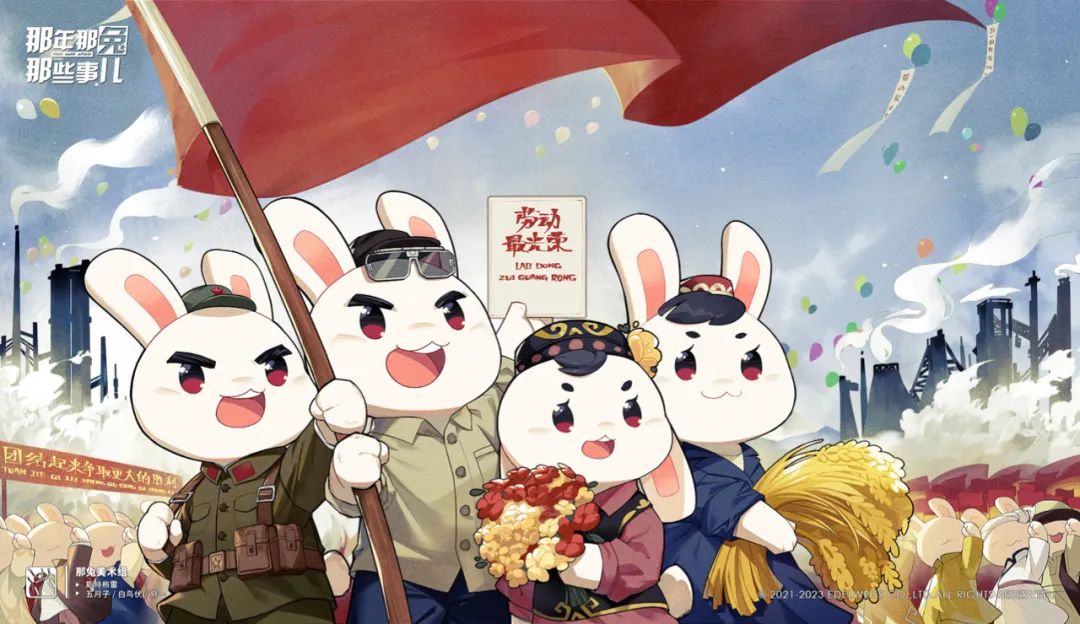 《那年那兔那些事儿》改编自同名漫画,以及由陆军政治工作部文工团与厦门翼下之风动漫科技有限公司联合制作的同名动画,通过虚构的动物形象,讲述了近代世界历史和中国历史的一系列重要事件。动画版第一季于2015年开播,现已播放六季。