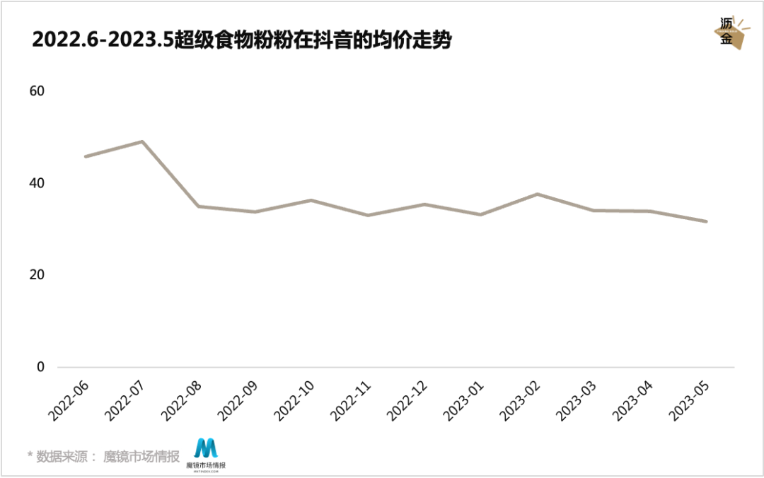 2022.6-2023.5超级食物粉在抖音的均价走势