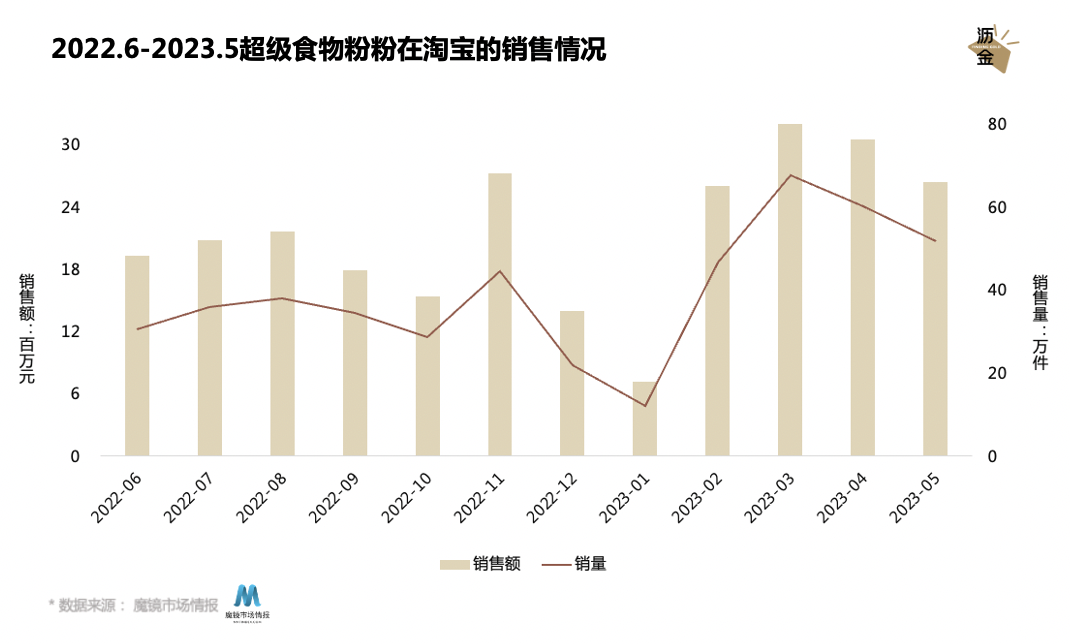 2022.6-2023.5超级食物粉在淘宝的销售情况