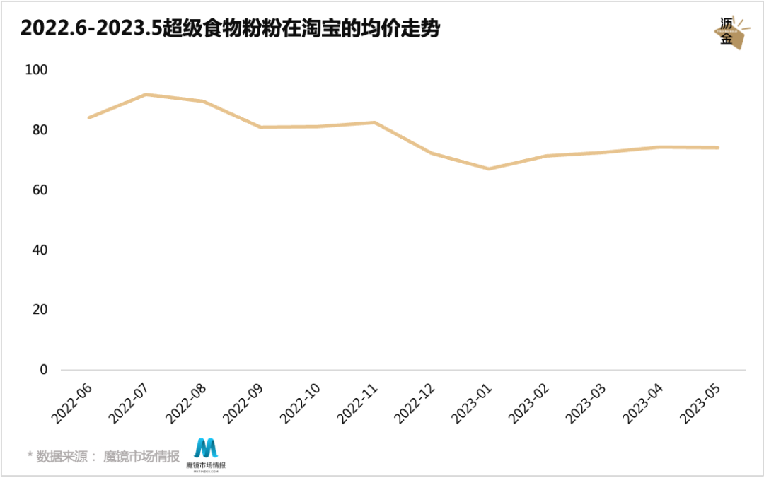 2022.6-2023.5超级食物粉在淘宝的均价走势