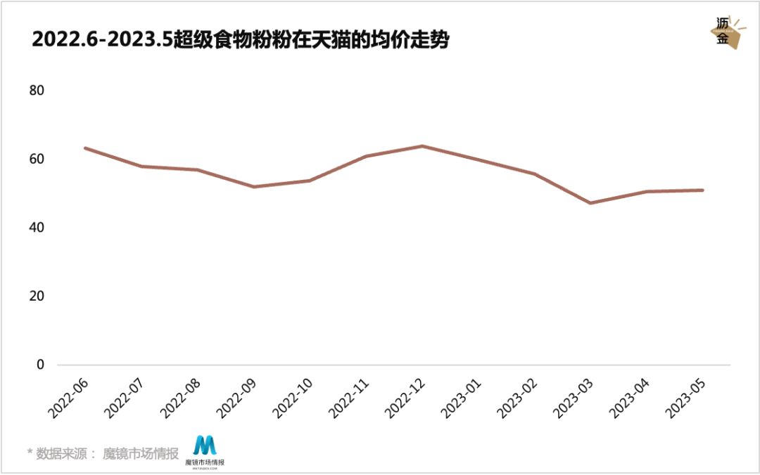 2022.6-2023.5超级食物粉在天猫的均价走势
