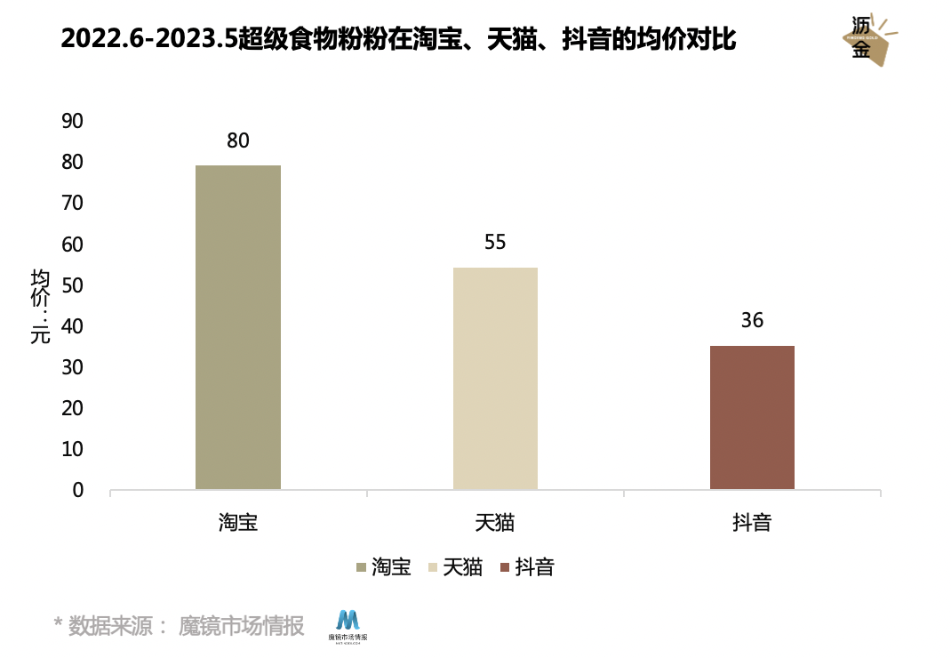 超级食物粉在淘宝、天猫、抖音的均价对比