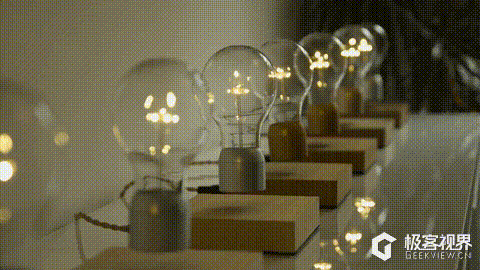 Flyte 灯泡构造非常简单,外形和普通的白炽灯灯泡没什么区别。但你只要轻轻将它放置在灯座上,便可以漂浮在那里。Flyte 榆木制的灯座里,隐藏着磁铁和电感线圈,又可以让灯泡悬浮又可以实现无线充电。生活中司空见惯的灯泡,一旦加入了点科技元素,也可以变得很炫。