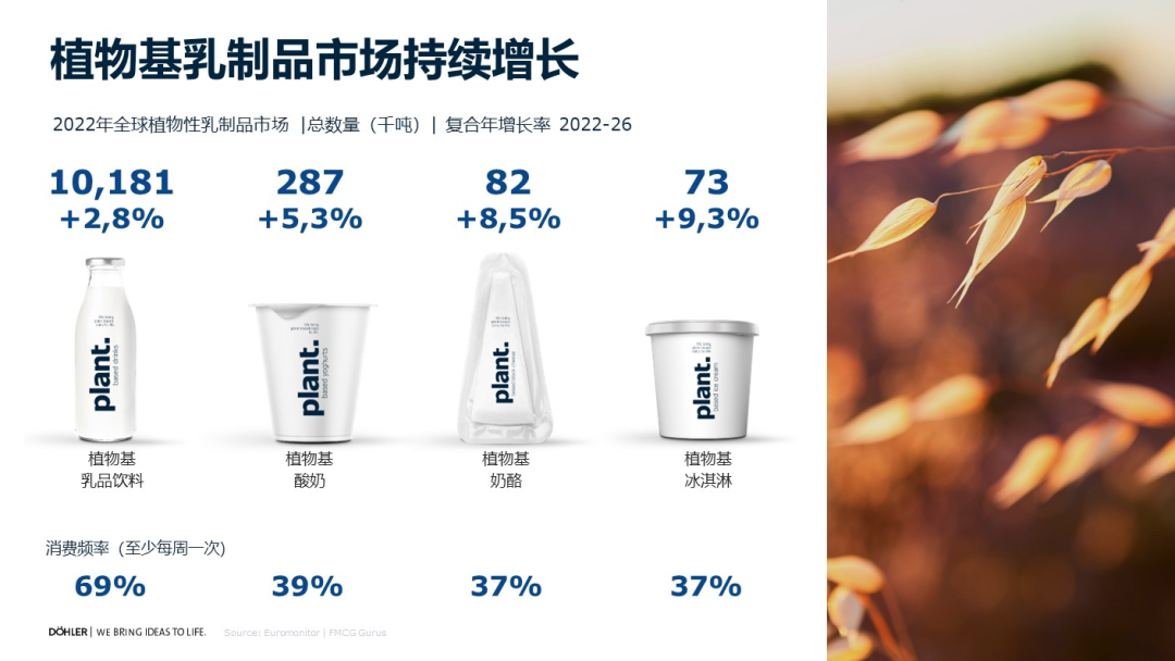 一些细分市场的数据也支持了这个结论,植物基的产品不管是酸奶类、饮品类、奶酪类都在快速发展,同时复购率也比较高,希望这对产品开发或者品牌创新有所帮助。