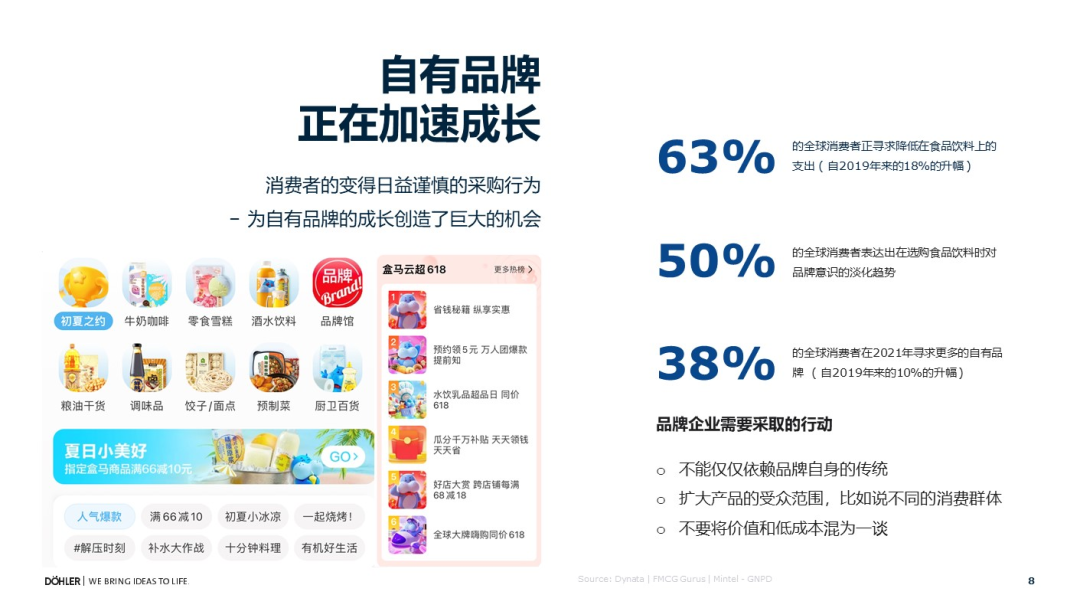三、38%的消费者已经采取了行动,更多选择自有品牌,这组数据对比2019年的调研结果提高了10%。