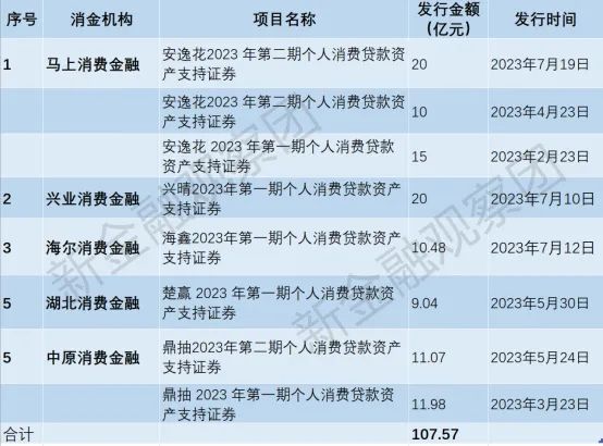 2023年消金机构ABS发行情况表 制表:新经济观察团