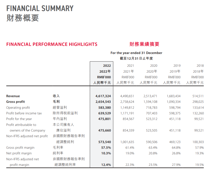 值得注意的是,2022年泡泡玛特的毛利及毛利率有明显的下降,毛利由截至2021年的27.59百亿元下降到2022年的26.55亿元,降低了3.8%;毛利率则是由2021年的61.4% 下降至2022年的57.5%。
