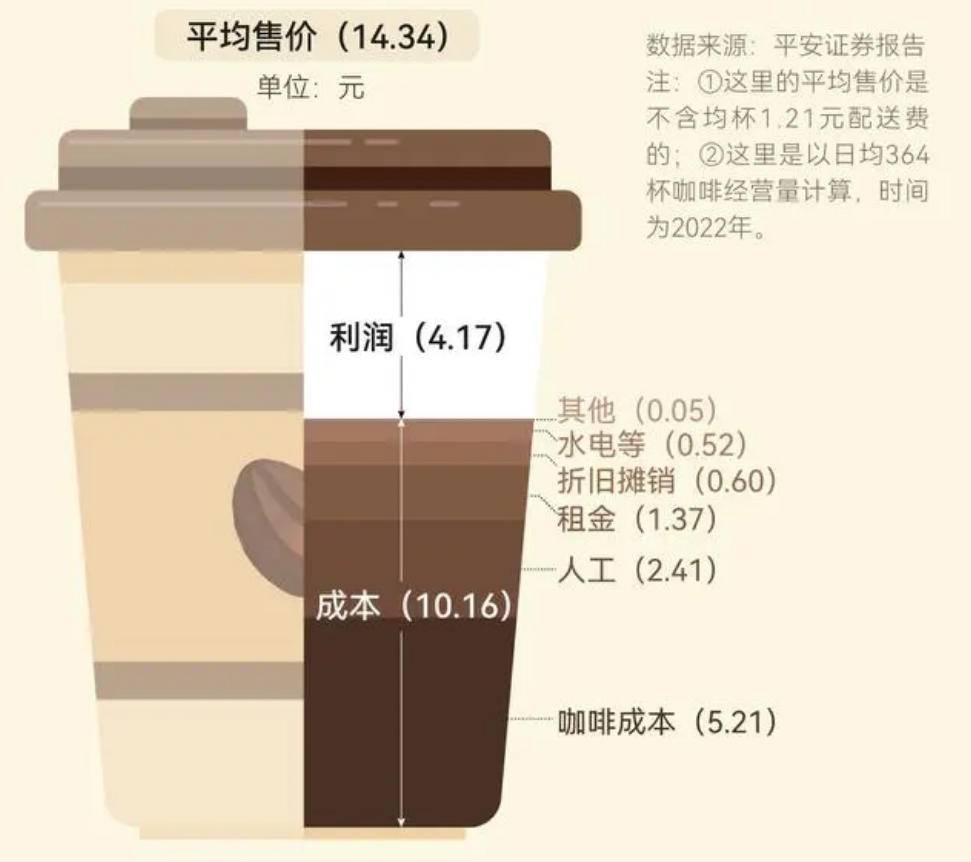 一份来自于平安证券的分析显示,随着瑞幸咖啡的日均经营量从300杯提升至364杯,其单杯咖啡的平均成本也从10.75元一杯下降到了10.16元一杯,特殊品类甚至能更低。