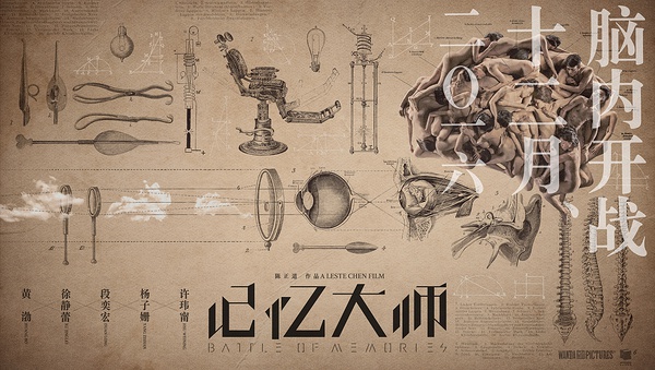 原本定于今年12月份上映的《记忆大师》此前发布过一张概念版海报,大脑由赤裸的人体组成。作为神经中枢的脊椎骨、眼球、耳朵、下颌骨主体,也分别对应了记忆介质中视觉、听觉、味觉。