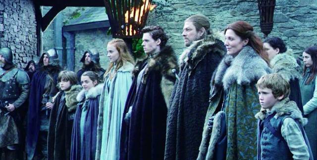 史塔克家族城堡为北境首府临冬城,族徽是白色雪原上的一只银灰色冰原狼,族语为“凛冬将至”(Winter is coming)。史塔克家族的责任感明显更强,也更循规蹈矩,是彻底的秩序维护者。奈德因此而送命,长子罗柏步其后尘,其实连雪诺也是如此,而长女珊莎在不断经历了宫廷的尔虞我诈之后才从“傻白甜”变得更有心机和城府。