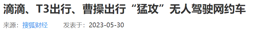 而其他网约车企业,如T3出行、曹操出行等也在自动驾驶的研发方面发力,猛攻Robotaxi。