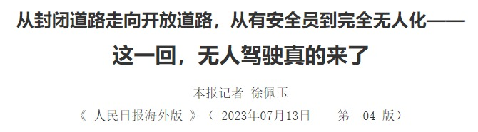 [1]《这一回,无人驾驶真的来了》,人民日报海外版
