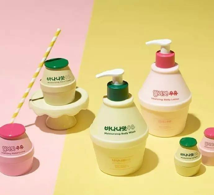 一度风靡亚洲的香蕉牛奶饮料有了款跨界产品。韩国品牌roundaround与香蕉牛奶推出了联名款,包括沐浴乳、身体乳、护手霜和润唇膏四种商品,含草莓和香蕉两种口味,包装和颜色也非常少女。