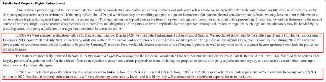 Interdigital在年报中,也提到中、美、欧等国家,对SEP专利监管政策的变化,将影响到该公司的营收能力。