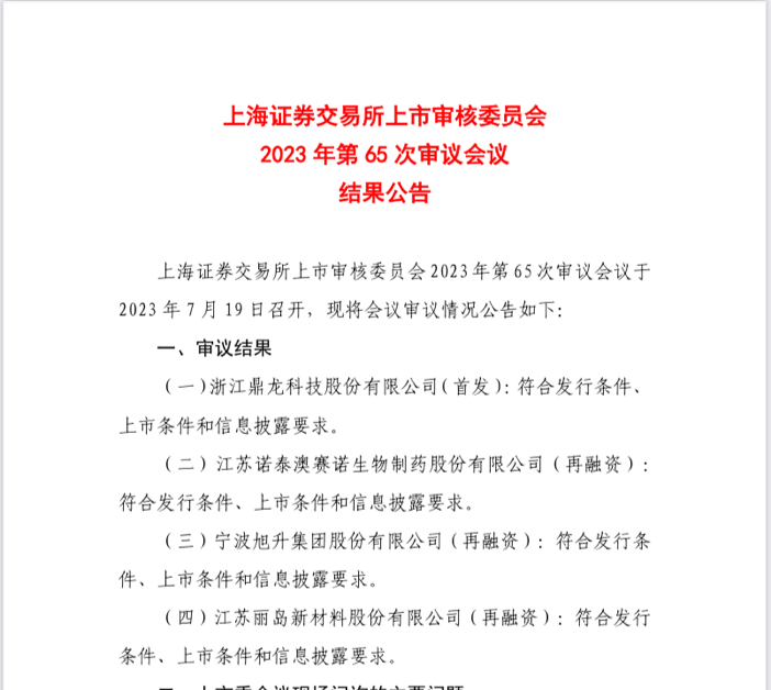 今日(7月19日),据上交所上市委2023年第65次审议会议结果公告显示,浙江鼎龙科技股份有限公司(下称“鼎龙科技”)首发上会获通过。
