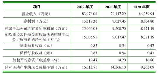 据招股书显示,虽然近年来化妆品市场不确定性因素较多,但鼎龙科技营收、净利润却逐年看涨。2020-2022年期间,鼎龙科技营收分别为6.44亿元、7.01亿元、8.31亿元,同期净利润分别为0.81亿元、0.90亿元、1.53亿元。