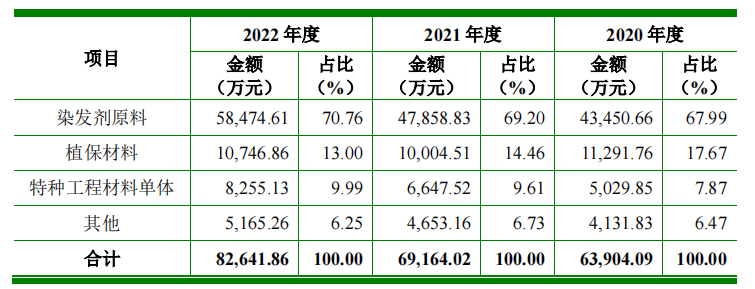 鼎龙科技表示,“2020年度,受宏观环境因素影响,染发剂原料行业产能受限,导致染发剂原料的售价较高。2021年度,由于宏观环境因素趋于稳定,染发剂原料行业生产企业产能相继恢复,导致染发剂原料的销售价格有所回落。”
