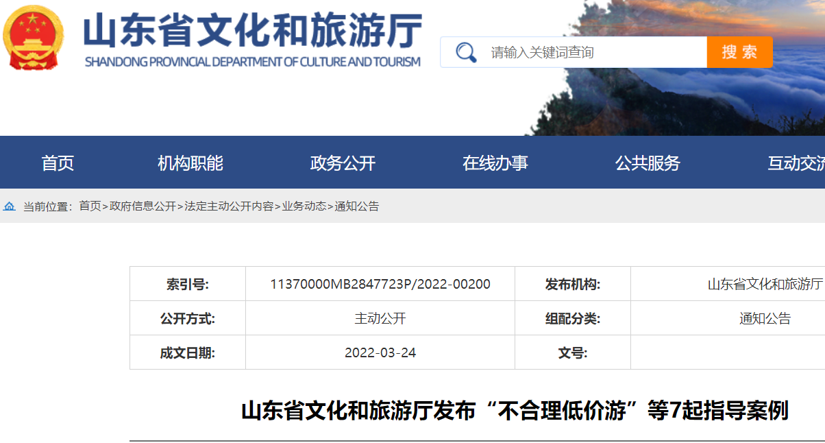 在去年的公告中,山东文旅厅已经明确,严查低于行业公认的合理价格的包价旅游产品,地接社以“零团费”价格或“买团”形式,接待不支付或者不足额支付接待和服务费用的旅游团队,并通过安排购物或者另行付费旅游项目获取回扣等不正当利益的“不合理低价游”违法违规行为。