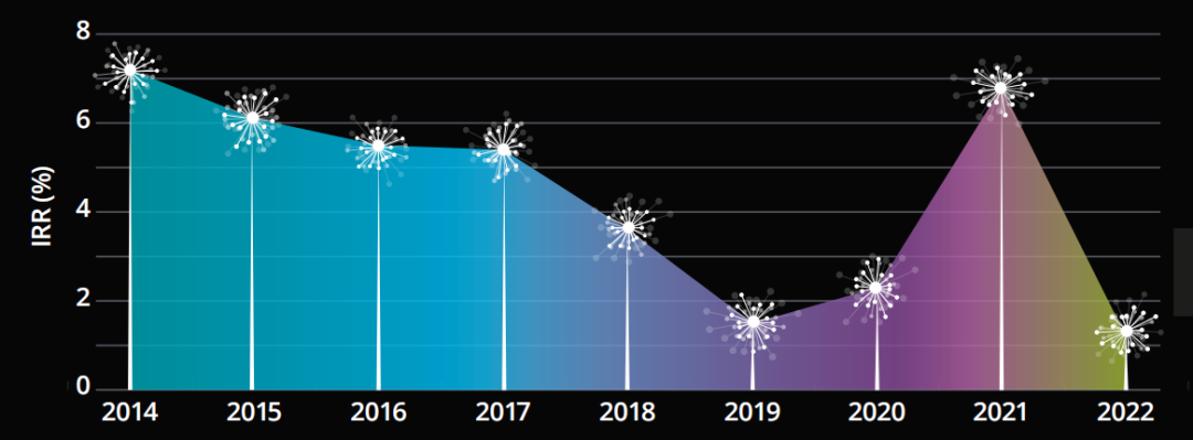 德勤《医药创新回报率评价》2022报告显示,2022年,全球新药审批回归常态后,生物制药研发平均回报率(IRR)又下降至1.2%,近九年最低。