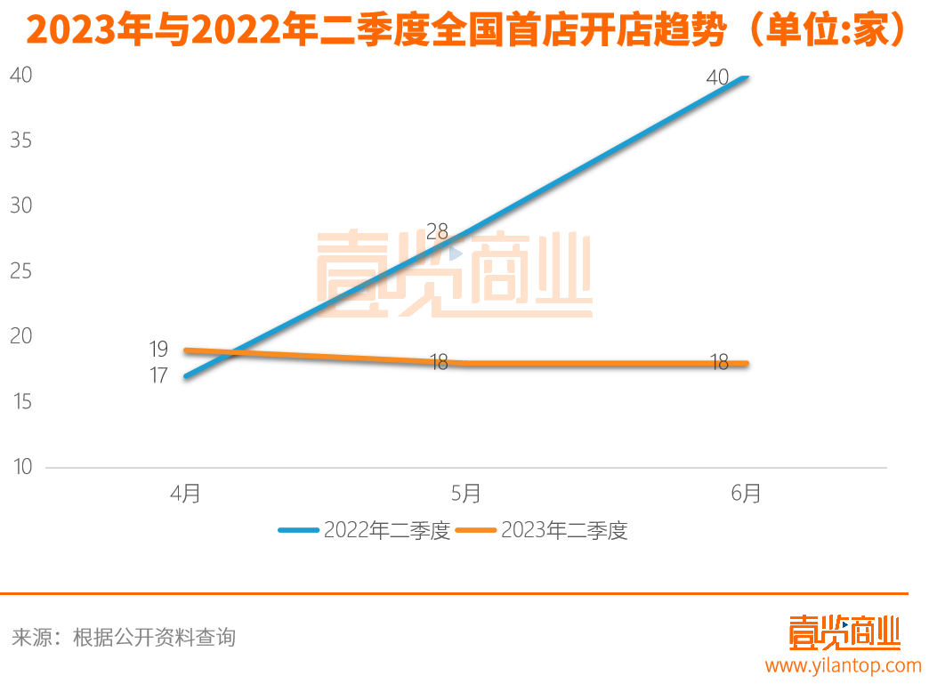 进入二季度以来,全国首店数量稳步提升,但与去年同期相比下滑幅度较大。