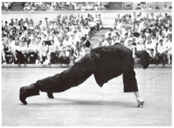 1964年,李小龙应邀出席美国加州长堤国际空手道锦标赛。他表演了双指俯卧撑(即用同一只手的拇指和食指,双脚分开大约一肩宽,作为支撑)。