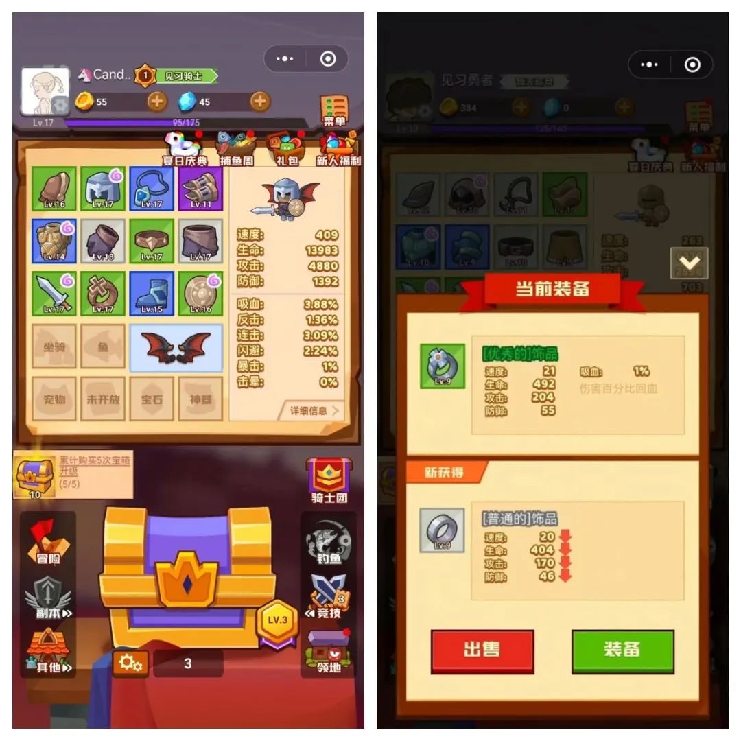 经过对游戏结构的一番调整,《疯狂骑士团》成为了一款以养成线路为主的、与众不同的RPG,也就是我们所谓的“开宝箱”游戏。