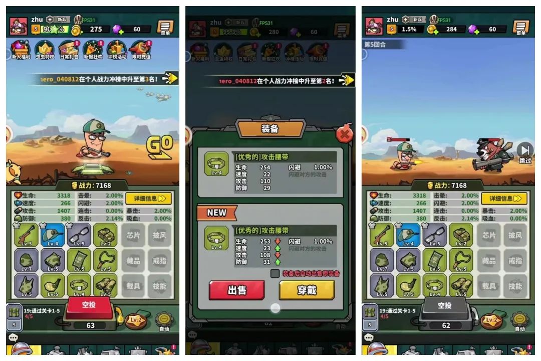 因此玩家可以根据情况对装备进行穿戴或分解。穿戴级别更高装备可以提升人物的攻击、防御、速度,生命等属性,随着养成进度的持续推进,角色各方面的属性数值越高,玩家在冒险通关(PVE)、野外首领(BOSS战)和竞技场(PVP)玩法中,就能更快地获得胜利。