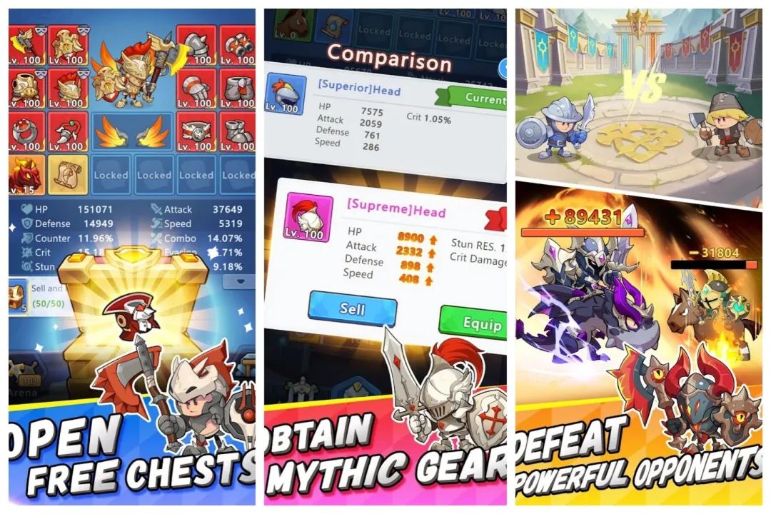 以《疯狂骑士团》为例,玩家在进入游戏后,就能够直接开启宝箱获得各种装备,这些装备分为普通、优秀、稀有、史诗、传奇、天赐、神铸等不同品质,装备的品质越好、级别越高,能为角色带来的属性加成就越多。