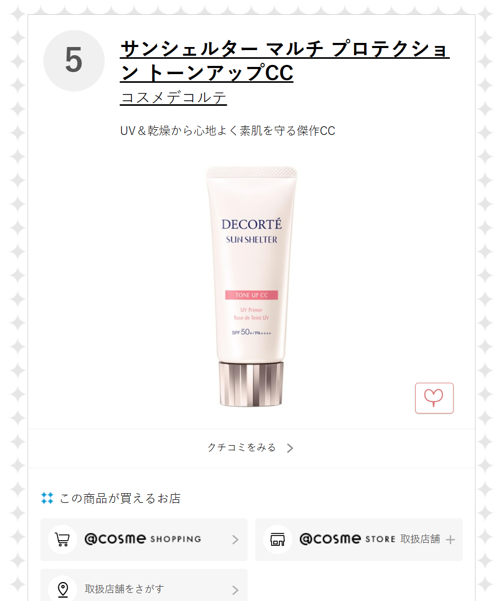 在@cosme 2023上半年人气排行榜中地位攀升至第五名的黛珂多重防晒CC霜(Cosme Decorté Sun Shelter Multi-Protection Ton-Up CC)就是这一趋势的体现,它被日本消费者广泛认可为“防晒、粉底和粉饼的三合一替代品”。