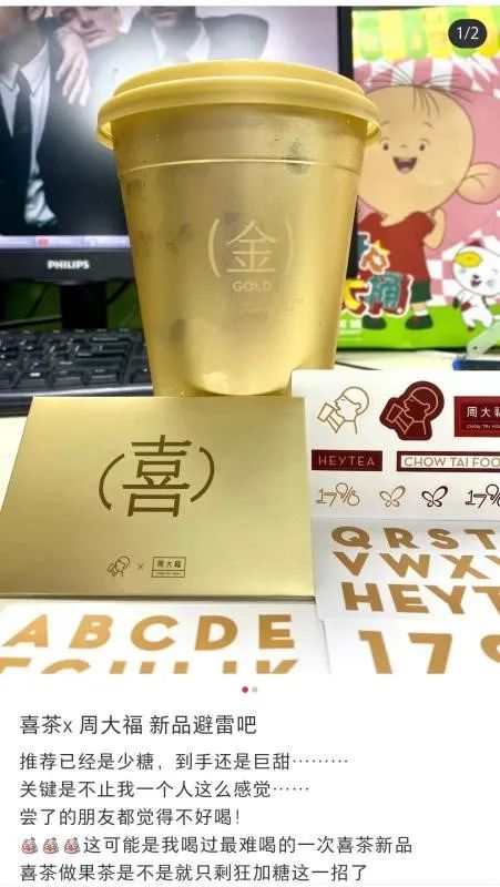 “这可能是我喝过最难喝的一次喜茶新品”、“说实话桃子和周大福也没啥关系,真的没必要为了联名而联名”、“又甜又腻,果肉也很少,还没有多肉桃李好喝”......在社交平台上,虽然很多人分享自己买到的喜茶与周大福的联名款,但是关于产品的避雷贴也不在少数。