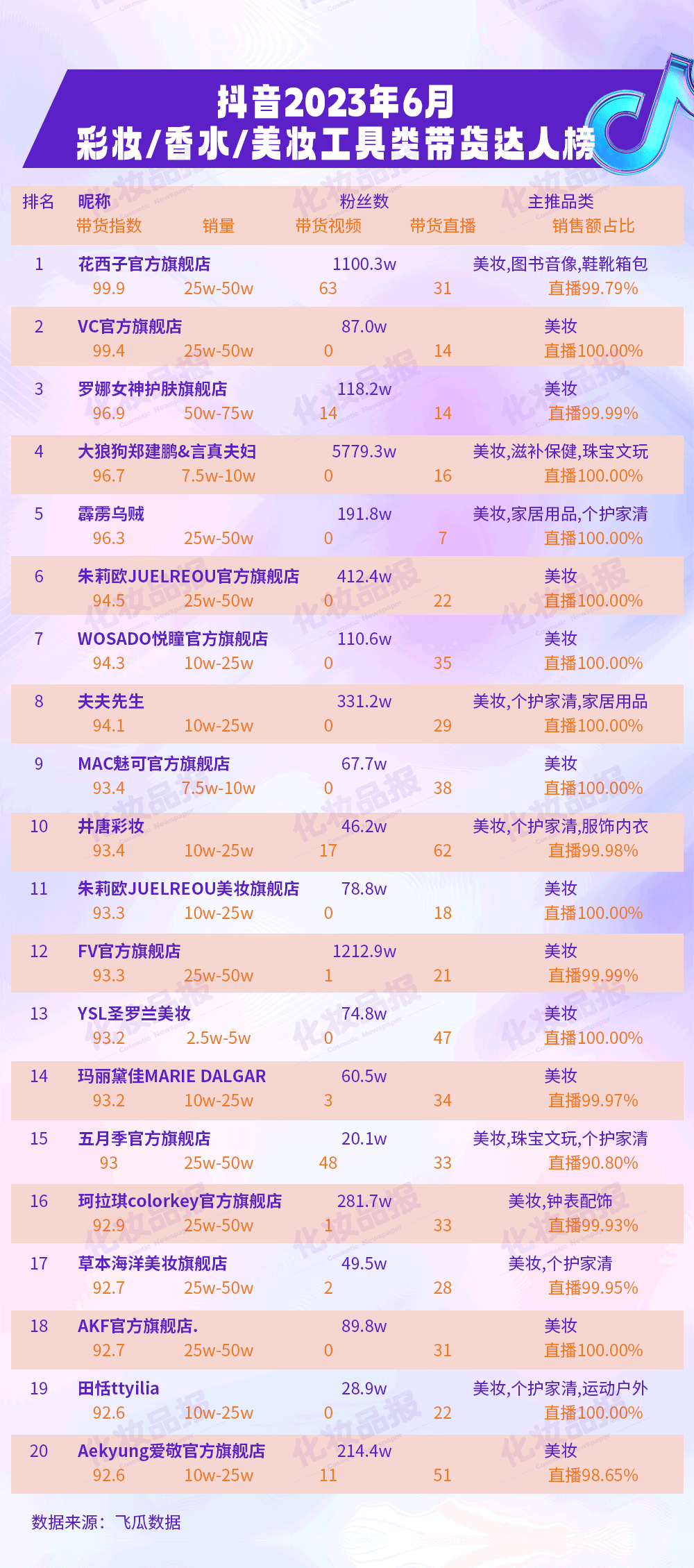 在化妆品直播电商领域,唯一不变的就是时刻不停的变化。在大主播逐渐隐退,传统电商增速放缓的背景下,抖音、快手的化妆品带货情况及效果一直备受关注。与之相比,更令人感兴趣的,恐怕就是美妆带货网红的排名。带货达人的成绩,能够体现出自身的价值乃至生存状况,更能折射出一个平台的生态。