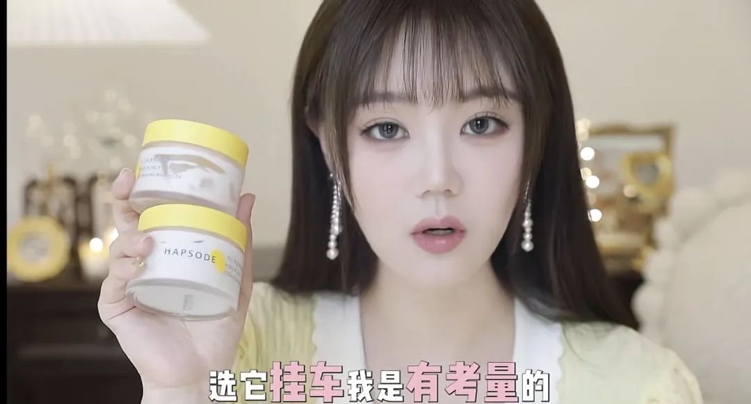 另一类是“传统美妆博主”的带货视频,时长大致在1分30秒左右。博主采用常见的短视频拍法,真人上镜试妆,并辅以大量成分分析甚至演绎,以为产品背书。如红鹤陈易欣为悦芙媞多酸泥膜带货,利用真人模拟了泥膜带走油脂的过程,最终点赞数4.5万,销售额100万-250万元。