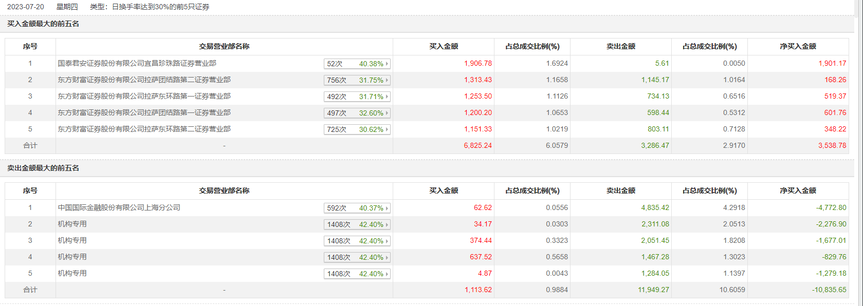 具体来看,机构买入1051.0万元,卖出7113.85万元,合计净卖出6062.85万元。此外,国泰君安证券宜昌珍珠路证券营业部、东方财富证券拉萨团结路第二证券营业部分别买入1906.78万元、1313.43万元;中国国际金融上海分公司、东方财富证券拉萨团结路第二证券营业部分别卖出4835.42万元、1145.17万元。