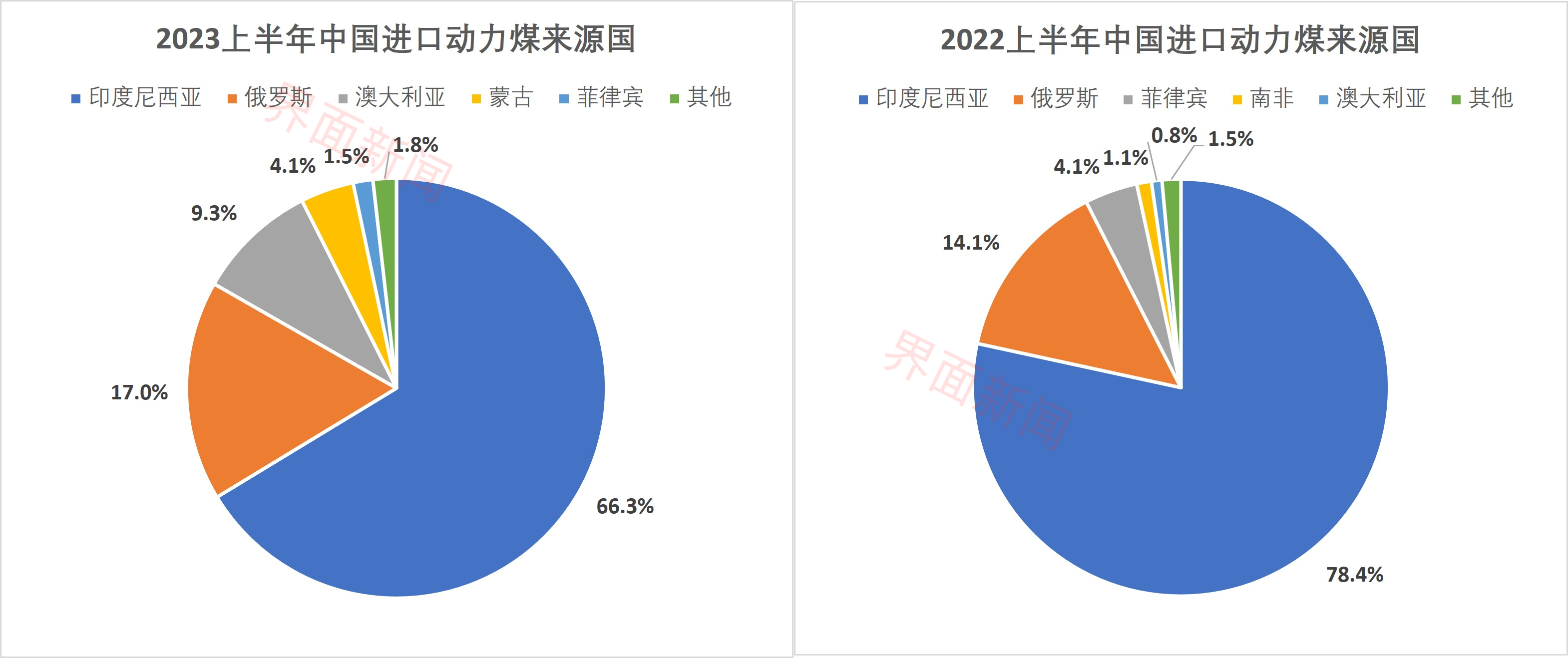 从上半年的进口情况看,印度尼西亚仍是中国最大的动力煤进口来源,占比达66.3%,但较去年同期下降了12.1个百分点;其次是俄罗斯,占比约17%。