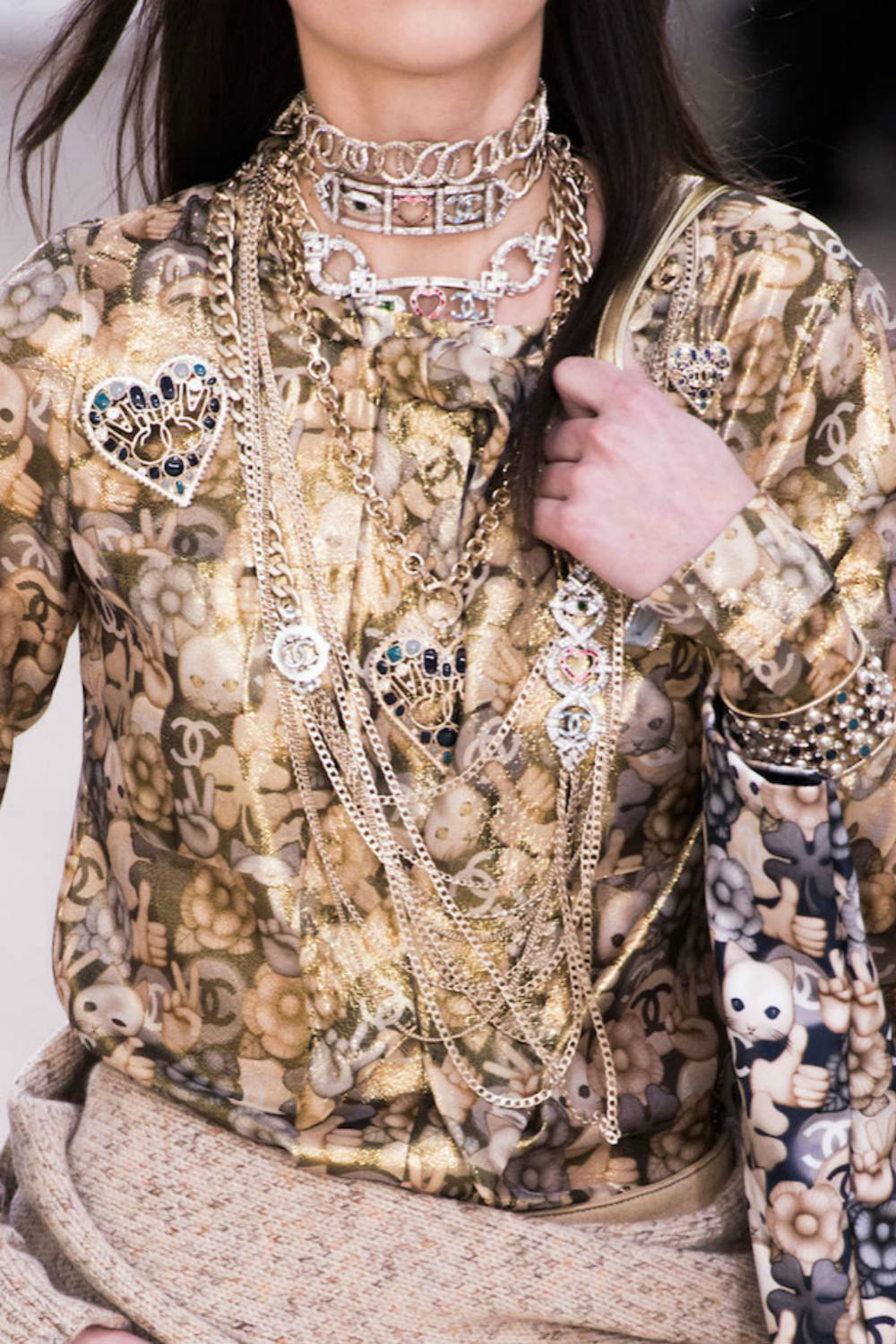 同样选择隐藏式emoji印花还有Chanel。不同于品牌创意总监Karl Lagerfeld直白无比的表情包,这次他将猫咪表情、胜利手势、点赞等颜文字变成印花,用在2016秋冬系列的几款衬衫中,不细看可能就会错过。
