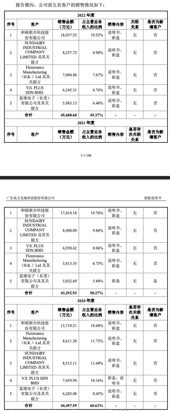 下游客户方面,公司在招股书中提到,“直接或通过代工厂商为包括微软、苹果、菲利普莫里斯、绿山咖啡、小米、徕芬、iRobot、Shark Ninja、今世缘、必胜等在国内外知名品牌公司提供纸质包装产品”。相应地,前五大客户名单并不知晓终端客户的销售金额及占比。