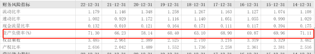 在转型迟缓的同时,格力的资产负债率却逐年攀升,2022年格力资产负债率达71.30%,为近年来新高。尤其近三年来,格力的资产负债率分别为58.14%、66.23%和71.30%,增幅明显,3年负债率提升13.16个百分点。同期美的的资产负债率为64.34%、64.05%和63.40%,尽管降幅不明显,却是呈下降趋势,而2020年美的64.34%的资产负债率远高于格力的58.14%,两年后,美的的资产负债率却低于格力7.9个百分点。