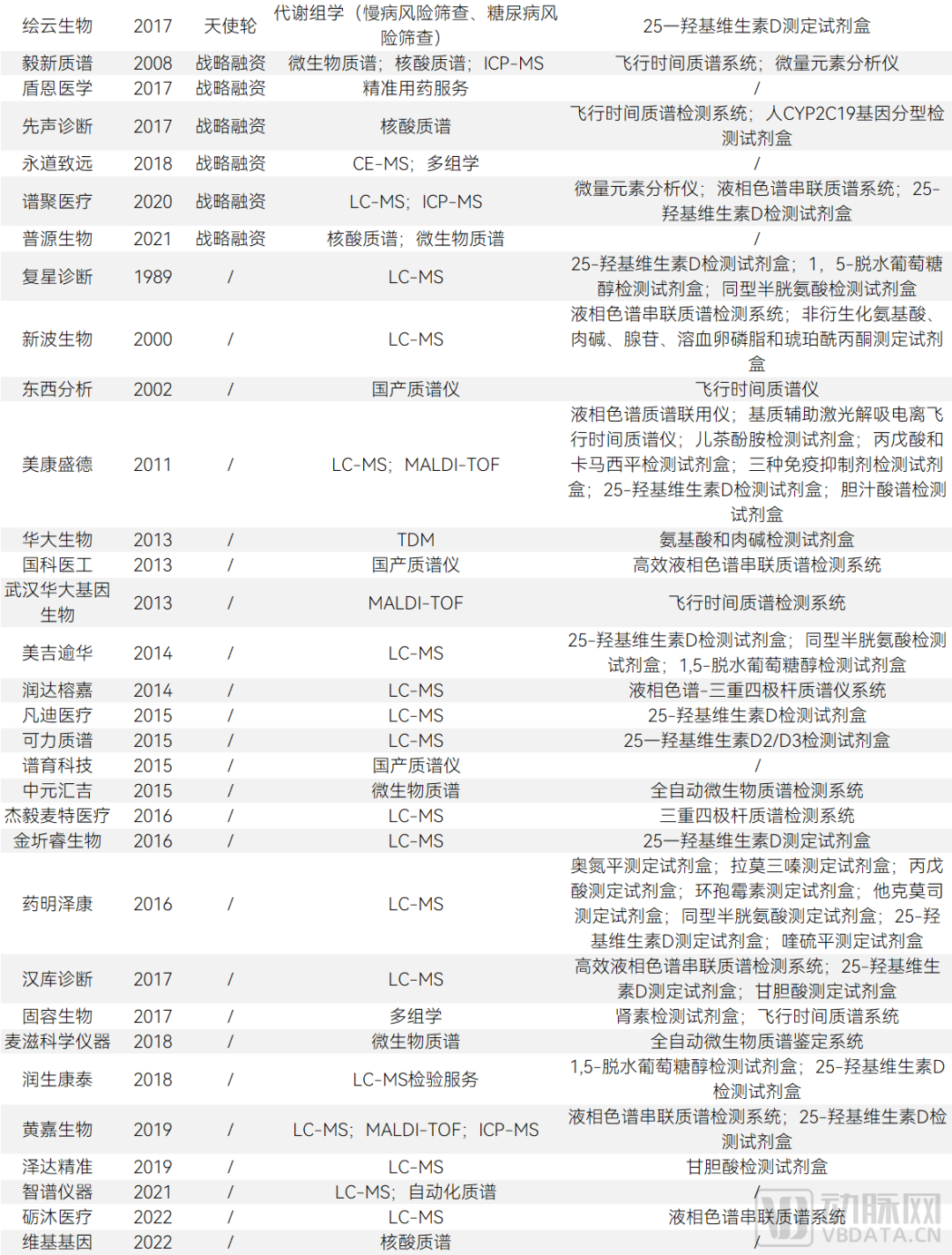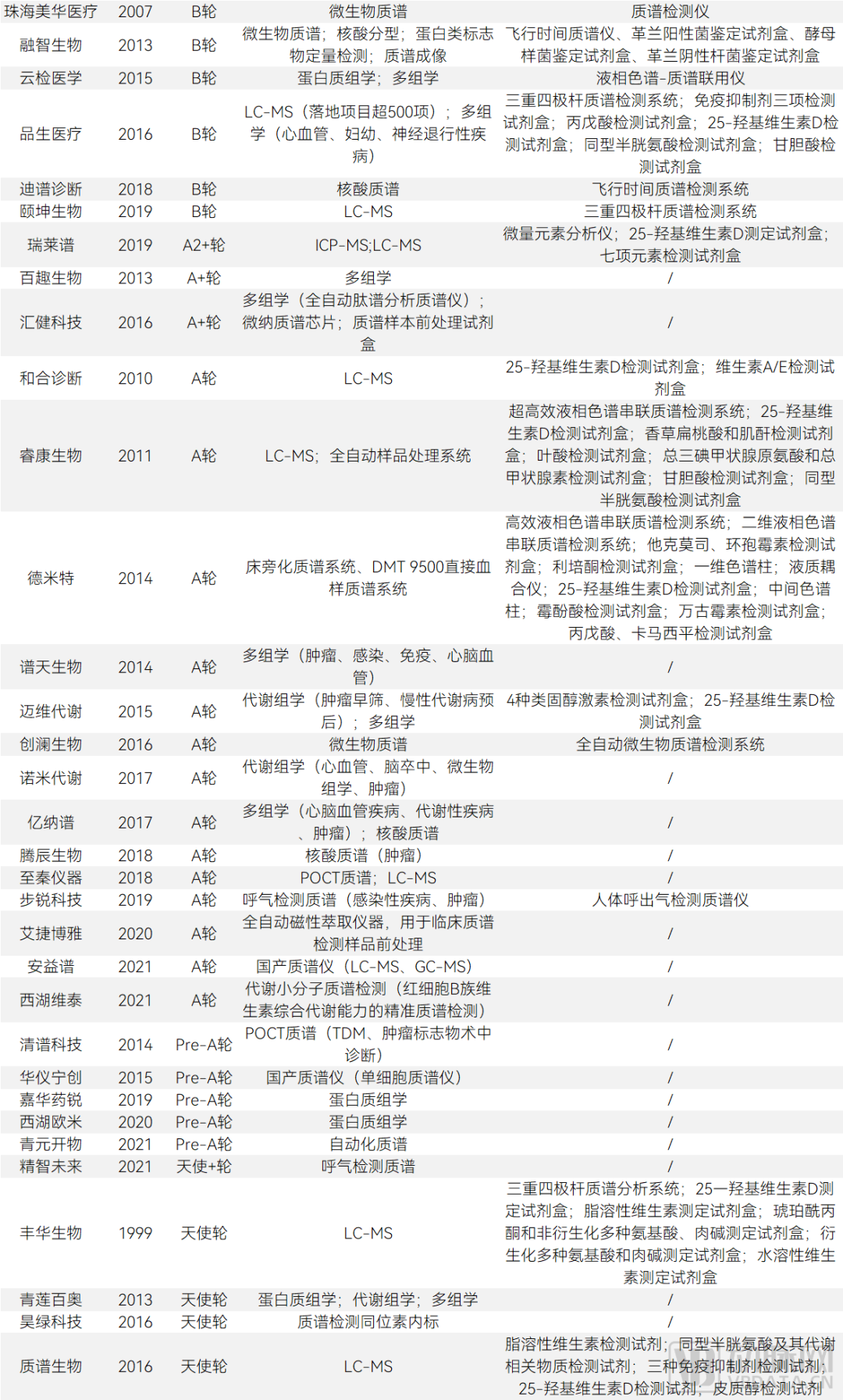 除常规项目临床落地外,资本市场对临床质谱的另一个兴趣点在于技术创新突破,比如能够挖掘创新多组学生物标志物的企业,实现质谱仪国产替代的企业等。这些细分板块处于早期阶段,技术壁垒高,是临床质谱重要的增长动力,投资人对这些新兴领域的热情有大幅的提升。