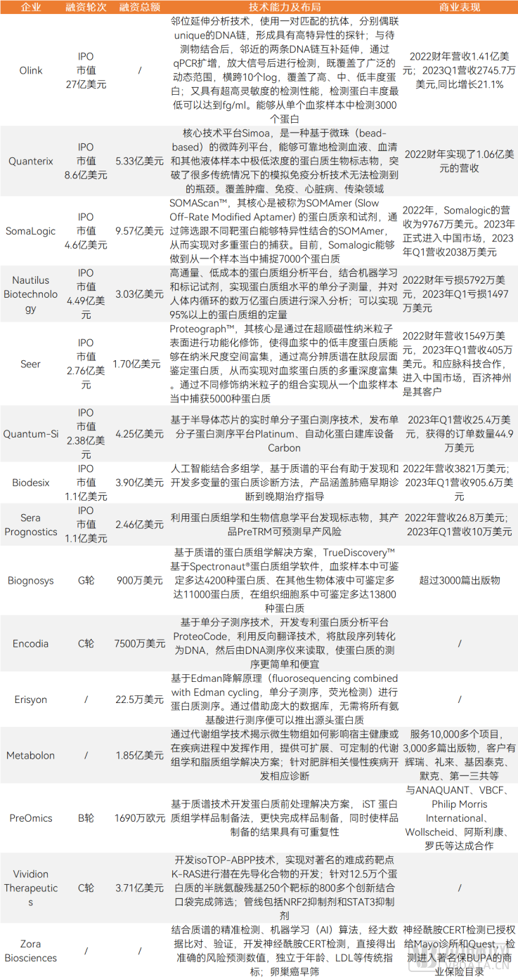 全球已经掀起多组学研究浪潮,海外已经多家有多组学企业成功IPO。海外多组学板块展现出了强劲的发展势头。Olink是多组学,特别是蛋白质组学板块当之无愧的领头企业,Olink可从单个血浆样本中检测3000个蛋白,市值27亿美元,营收从2019年的4600万美元增长到了2022年1.4亿美元,2023Q1营收2745.7万美元,同比增长21.1%;Quanterix市值8.6亿美元,2022财年实现了1.06亿美元的营收,覆盖肿瘤、免疫、心脏病、传染领域;SomaLogic市值4.6亿美元,能够从一个样本当中捕捉7000个蛋白质;Zora Biosciences是代谢组学运用于临床检测的代表企业,旗下的心血管组学检测产品已在欧洲多个国家的医院体系、美国的Mayo Clinic和美国第三方检验巨头Quest等医疗机构常规使用,相关检测项目已进入美国商业保险目录,开启了多组学从研究到临床应用的转化。
