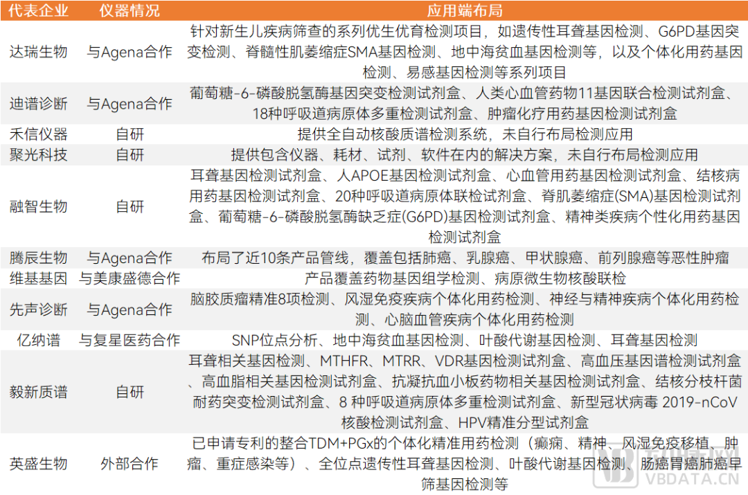 从微生物质谱转向核酸质谱是一个可行的路径,布局核酸质谱的企业正在迅速增多。微生物质谱企业众多,竞争日益激烈,相比微生物质谱,核酸质谱的竞争相对较小,同时市场想象空间巨大,对企业的吸引力更强。核酸质谱门槛主要在于核酸分型试剂存在专利壁垒,随着国内核酸质谱企业增多,这些壁垒正在打破,国内核酸质谱企业目前在积极布局药物基因组学、遗传性疾病、感染性疾病、肿瘤早筛等项目。