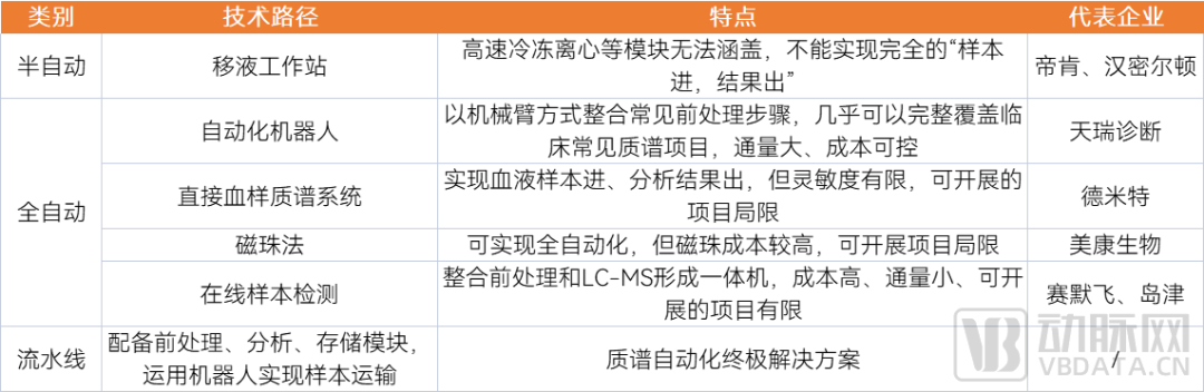 LC-MS自动化前处理技术路径丰富,包括移液工作站、磁珠法、直接血样质谱系统、一体机等等。