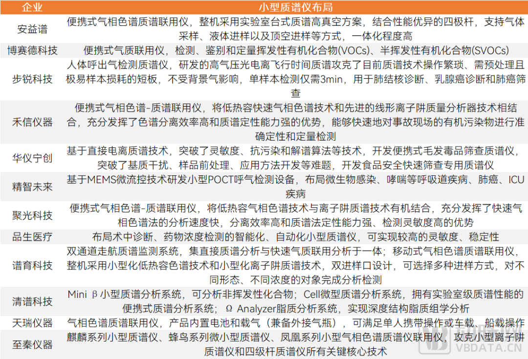 另外,从前处理环节看,POCT质谱需要绕开复杂、耗时的前处理环节,或是快速将样品离子化,流动相等复杂的操作环节也需要简化,因此,GC-MS、高气压光电离飞行时间质谱这类不需要前处理步骤,能够直接对复杂样本进行分析的质谱技术更适合进行小型化质谱仪。其次,质量分析器方面,可以研发小型化的离子阱、四极杆、飞行时间,真空系统方面,可以研发小型真空泵、分子涡流泵及隔膜泵,各个板块均实现小型化后,最终实现整机小型化。