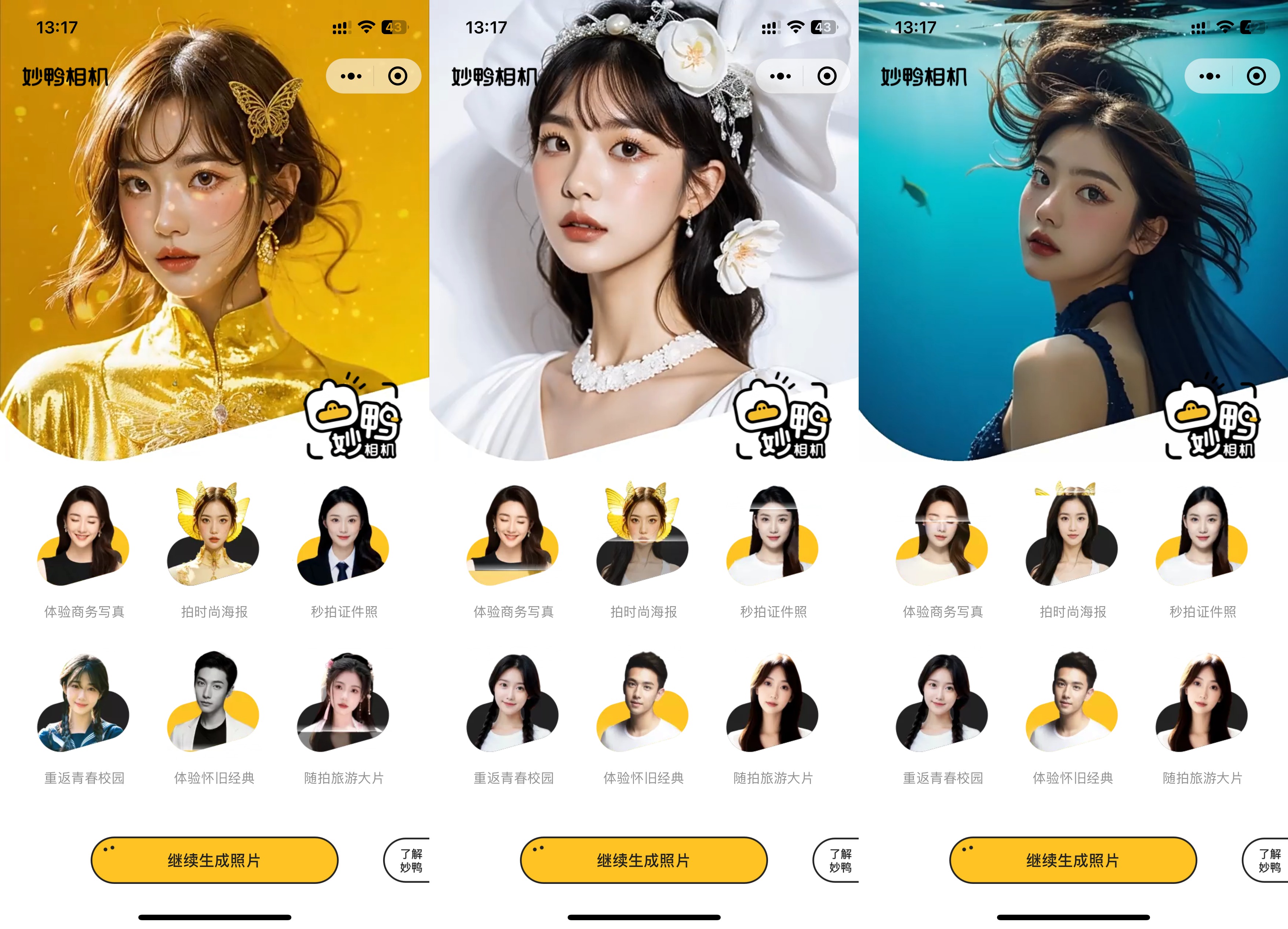 妙鸭相机的爆火在于它的出图效果对标了海马体、天真蓝等连锁摄影机构,后者的写真风格精美华丽,提供全流程的妆造和修图服务,但定价通常在100-500元不等。如果妙鸭相机能做到几乎持平的效果,同时观感自然,吸引大量用户并不奇怪。