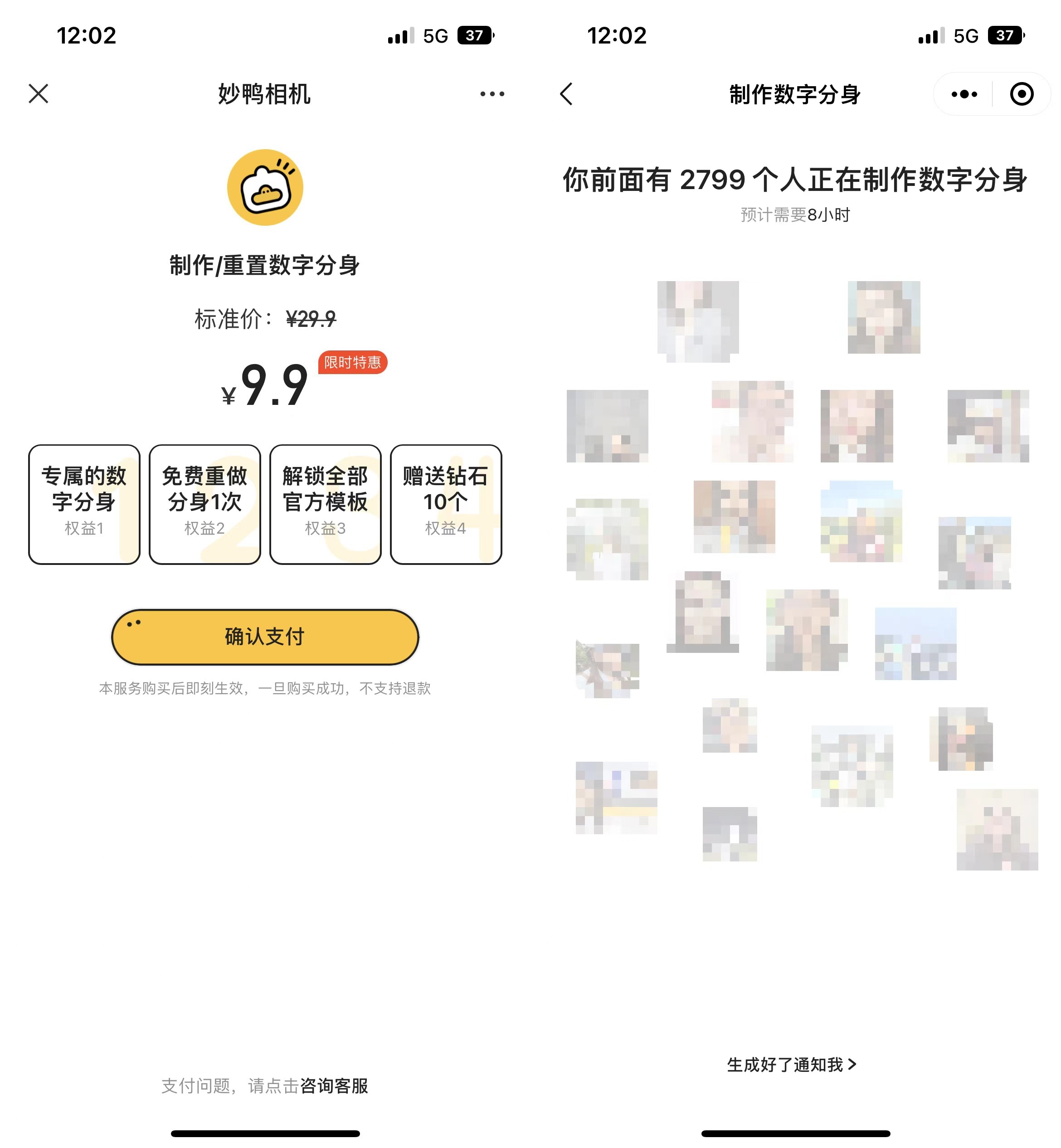 界面新闻记者在第一环节提交照片时,就被提示“服务器被挤爆了”,在成功上传20张基础照片后,也还需要等待10分钟左右识别时间。真正进入数字分身制作环节后,你会发现自己身处2800名的队列之中,需要等待8个小时。