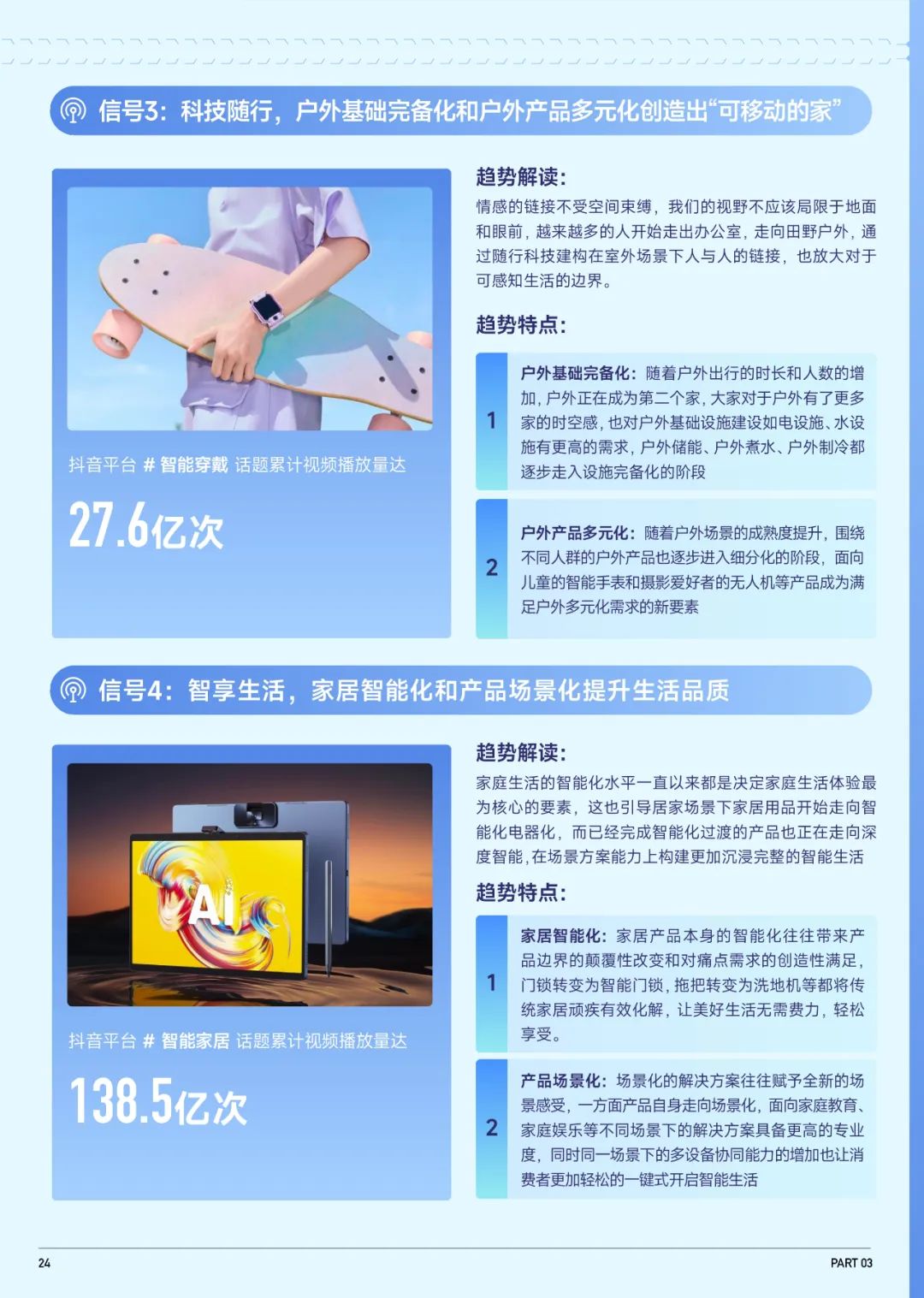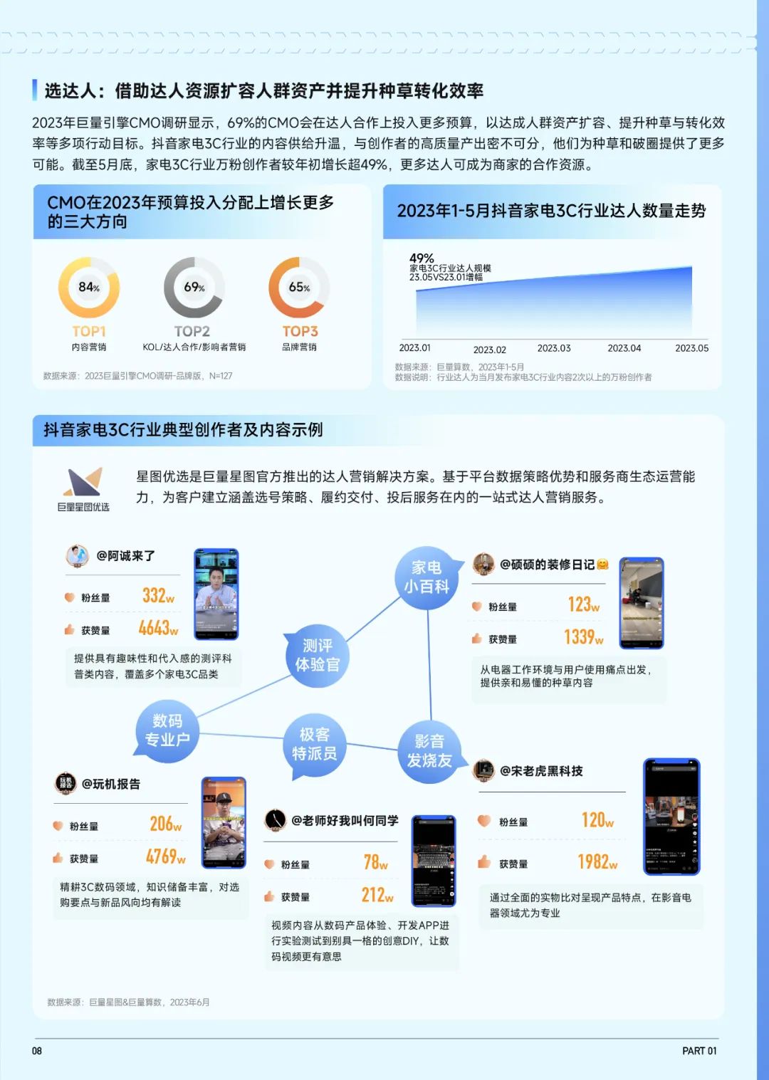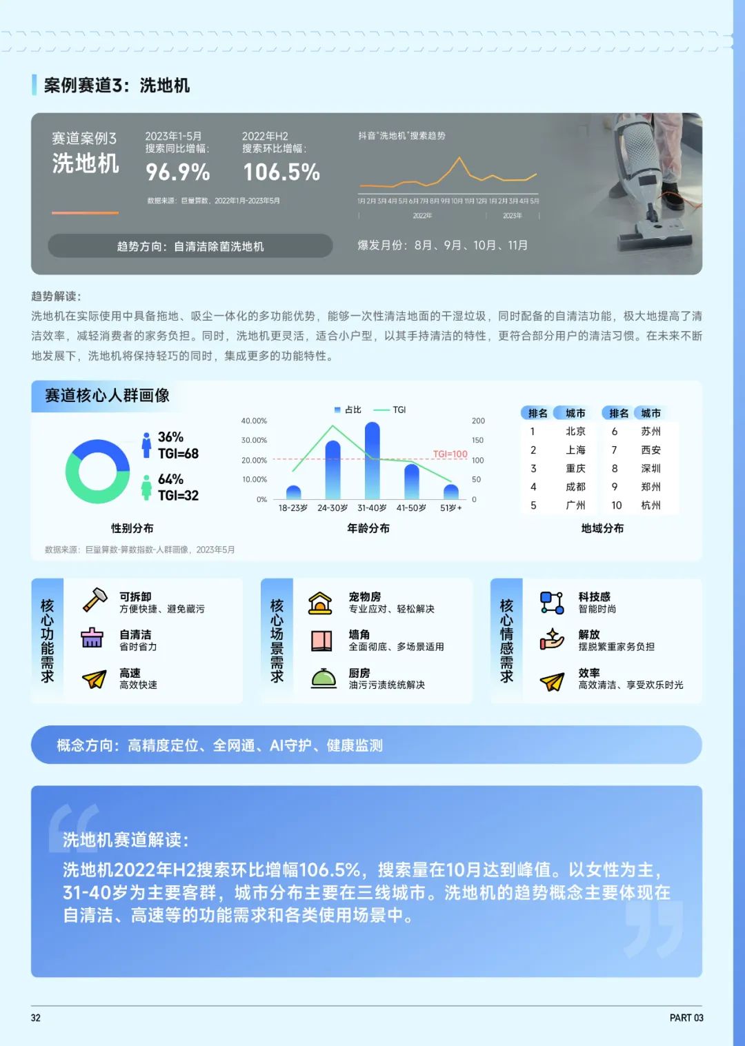 奥维云网(AVC)联合巨量算数&算数电商研究院发布《2023年抖音趋势赛道名片 | 家电 3C 行业专刊》,结合行业洞察与赛道挖掘,总结出“空间魔术”“赛博康养”“科技随行”“智享生活”四大主题风向,以及相关的 46 个高潜趋势赛道。报告显示:在2023年消费逐渐理性复苏的良好态势下,家电3C行业的线上市场延续韧性增势,从行业回暖态势来看,各品类仍存在分化。存量型品类市场中有较为温和的复苏体现,部分季节性品类呈现较高速的修复。分渠道看,线上渠道仍然在复苏态势上呈现一定的引领性,部分品类线下市场也呈现较为强劲的复苏状态。