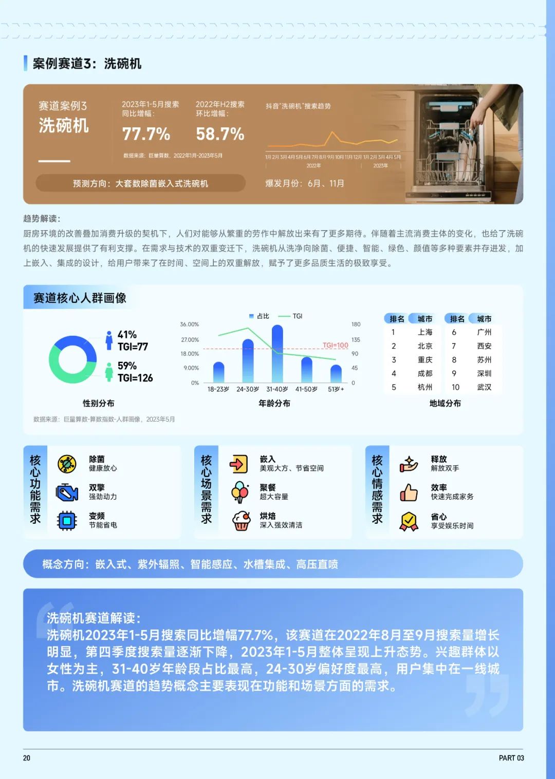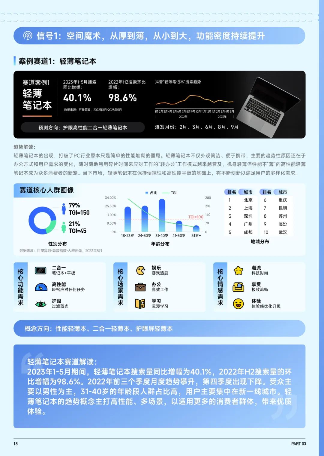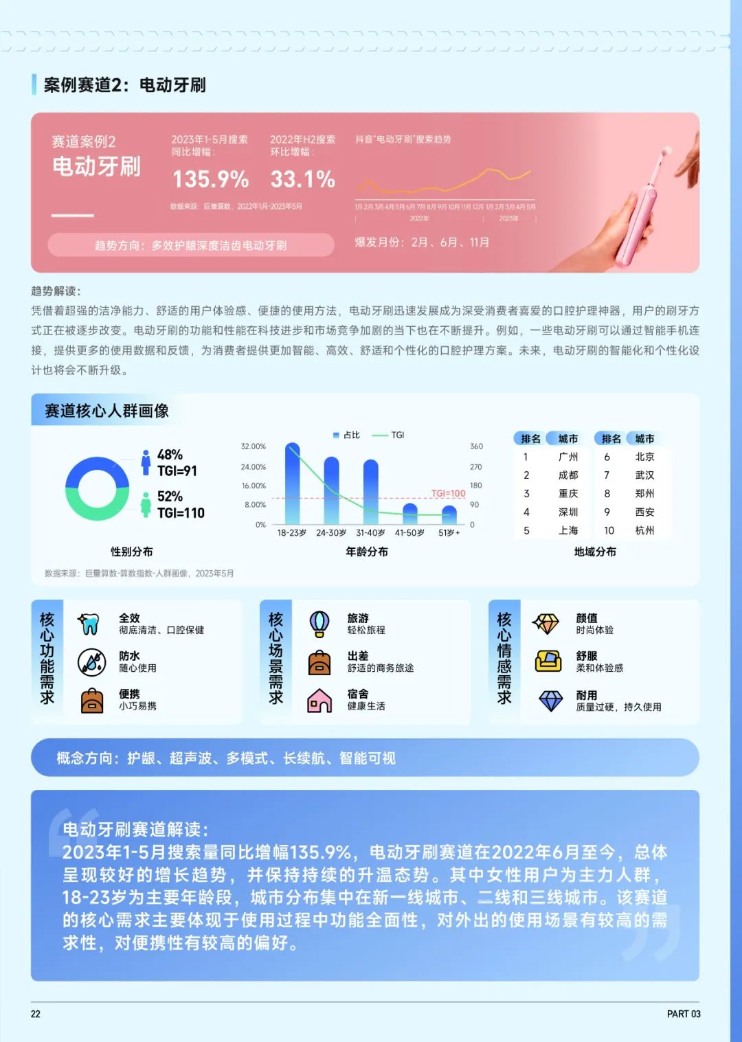 以早期、成长期和成熟期三类生命周期的划分标准下,各板块的品类皆迸发出多样化的发展趋势,呈现出更多的可能性。结合案例进一步分析,以及赛道核心人群的画像描绘,对趋势赛道信号有了深层次的解读和提炼。