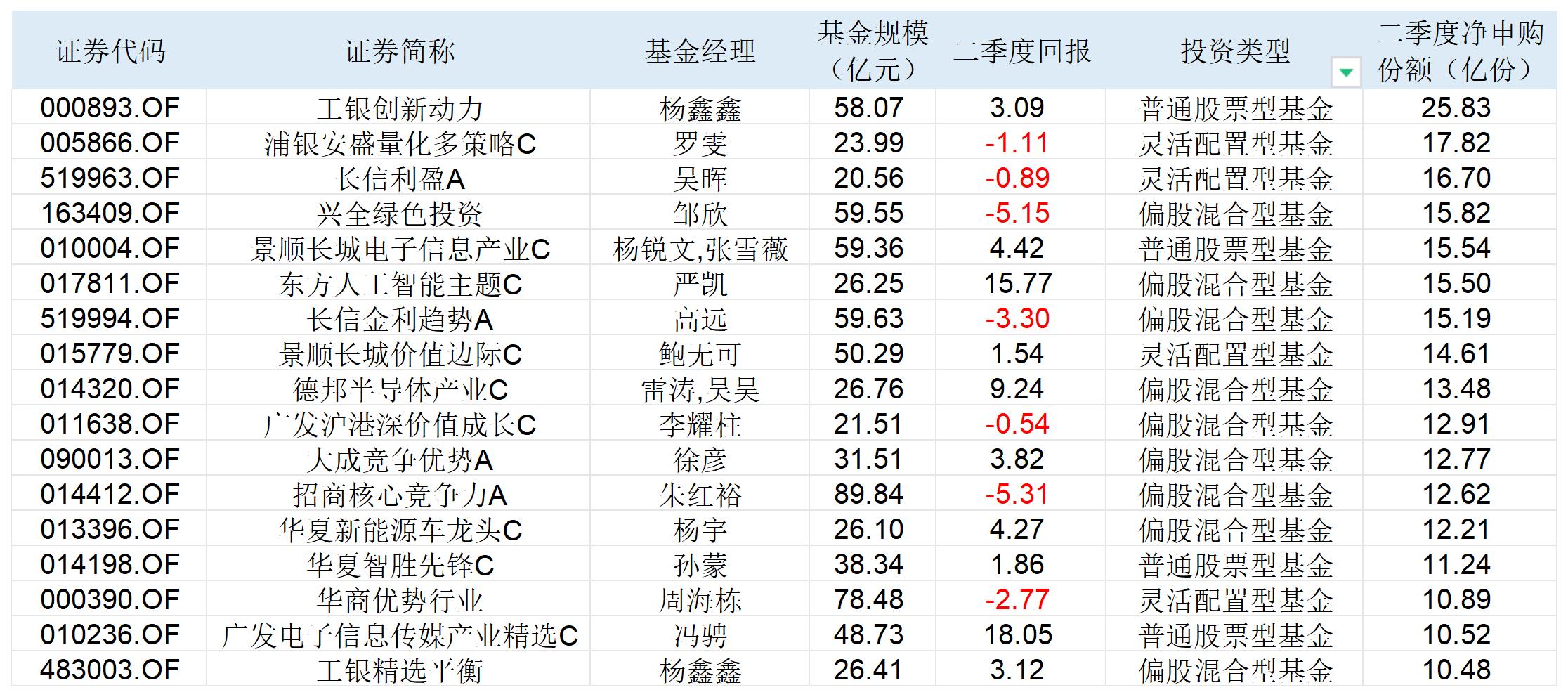 全市场公募产品的二季度申赎情况已经水落石出,我们来看看哪些产品在该季度最受资金欢迎?